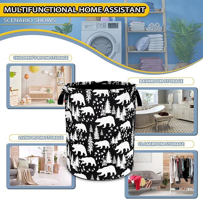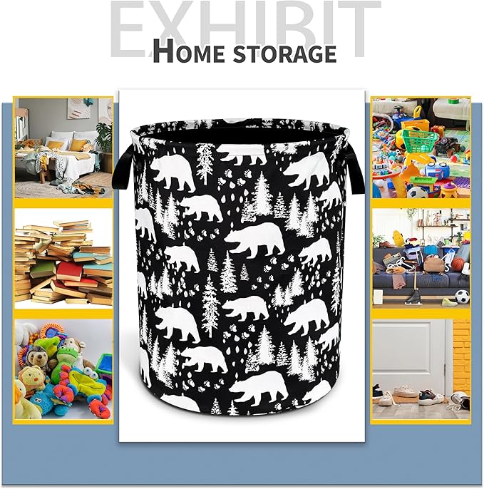 Bear Laundry Basket Forest Bear Paw Foldable Oxford Cloth Funny Tote Bag Laundry Hamper Clothes Storage Bucket Toy Organizer For Bathroom/Laundry Storage/Bedroom 18.9x16.5 Inch