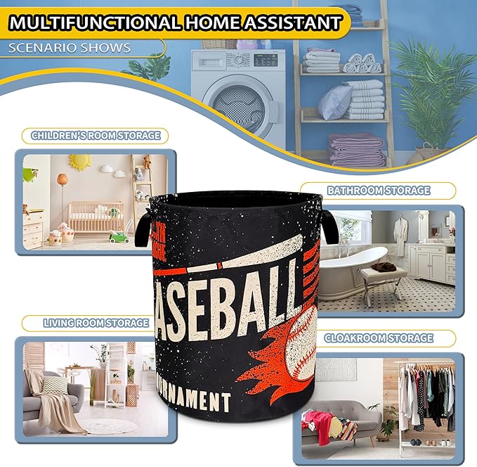 Baseball Laundry Basket Foldable Oxford Cloth Funny Tote Bag Laundry Hamper Clothes Storage Bucket Toy Organizer For Bathroom/Laundry Storage/Bedroom 18.9x16.5 Inch