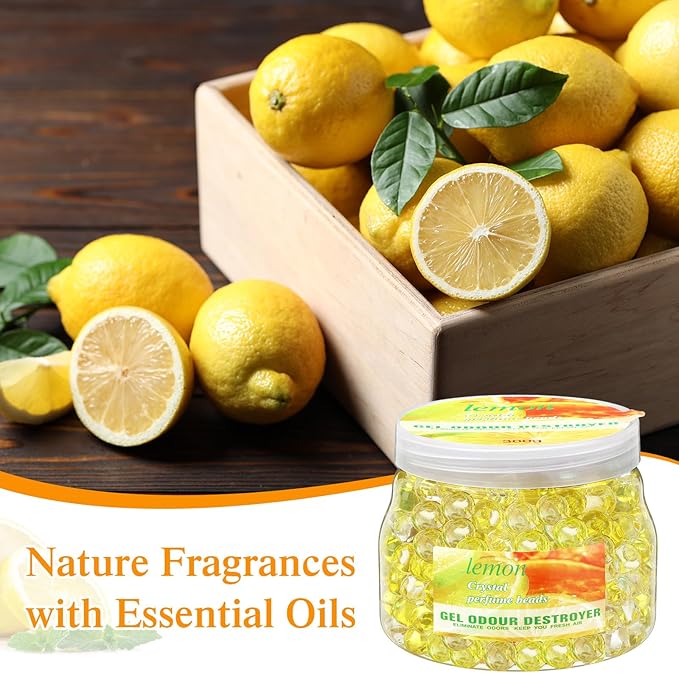 - Fragrant Material: our odor eliminator gel beads doubles as a pleasant room deodorizer odor eliminator; It's made from plants and carefully crafted with a blend of essential oils and spices; This unique formulation not only eliminates unwanted odors but also fills your home, car, or boat with a delightful lemon scent that lasts