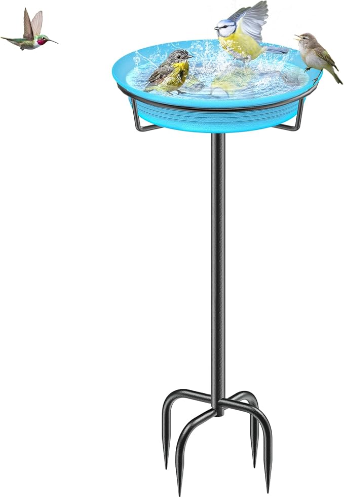 35.5In Freestanding Birdbaths Bowl Outdoor, Free Standing Garden Bird Bath Bird Feeder Bowl with Metal Stake, Detachable Decoration Spa Birdfeeder for Garden Patio Yard Lawn, 4 Spiky Feet (Blue)
