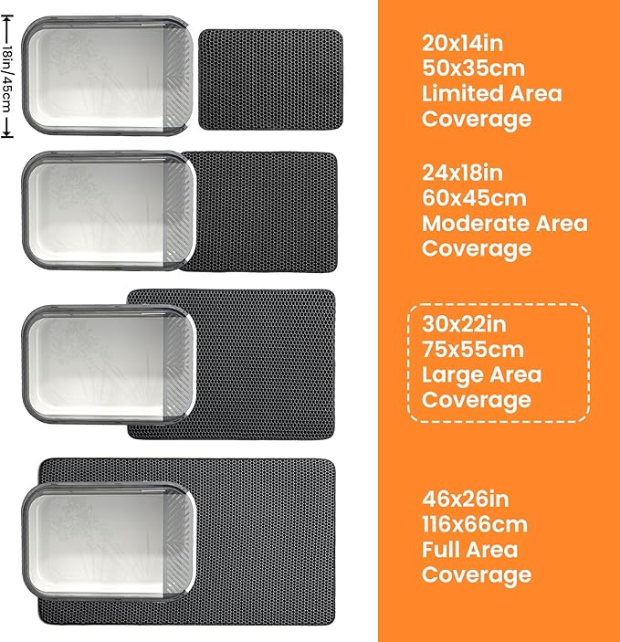 - Double Layer Honeycomb Structure: The holes in the top layer trap all types of litter and let it fall through to the waterproof bottom layer for effortless cleanup. Just lift litter catcher mat, pour the collected litter back, and reuse — no mess, no hassle. This smart design helps reduce litter waste and makes daily cleaning faster and easier!