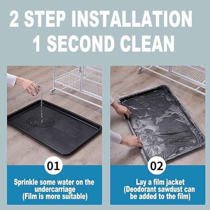 - Easy to Use and Clean: The disposable animal tray film is the easiest way to clean the cage! Just spray water on the tray and spread the film onto the tray, when clean it, just lift up the liner and throw it away, which saves time of cleaning the pet cage