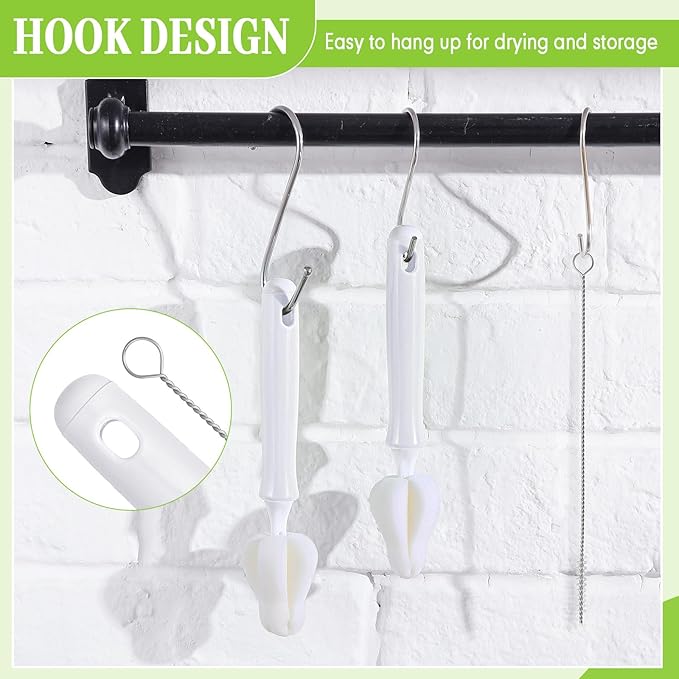 - Thoughtful Design: these bottle brushes accessories come in practical design, the handle and straw brush end with hook hole design can be hung after use, the handle can ensure a firm grip without worrying about falling