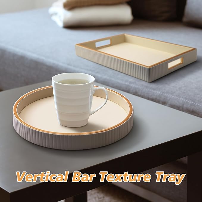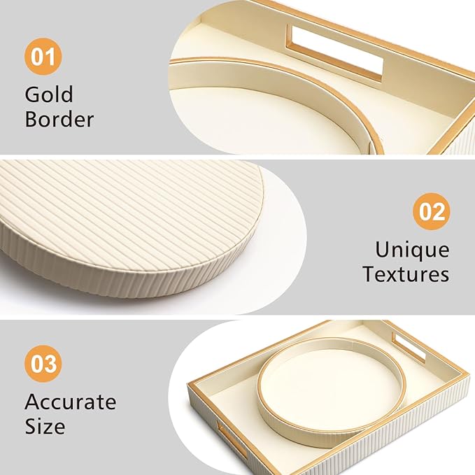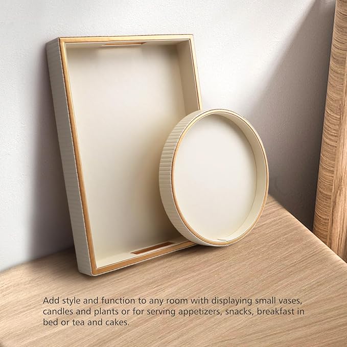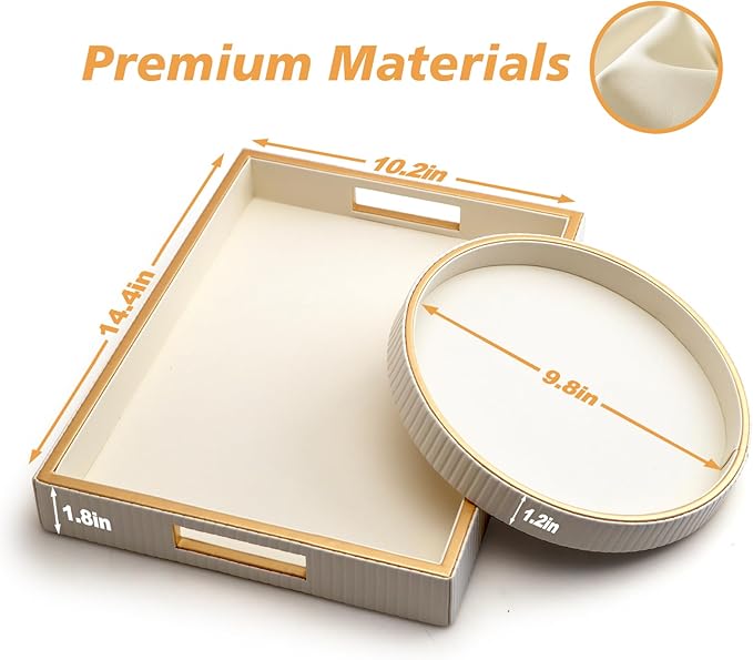 - 【Approximate Dimension】Rectangular tray, 15.3*11.2*2 inches. Round tray, diameter 10 inches, high 1.2 inches, making it a perfect size for storing small items.