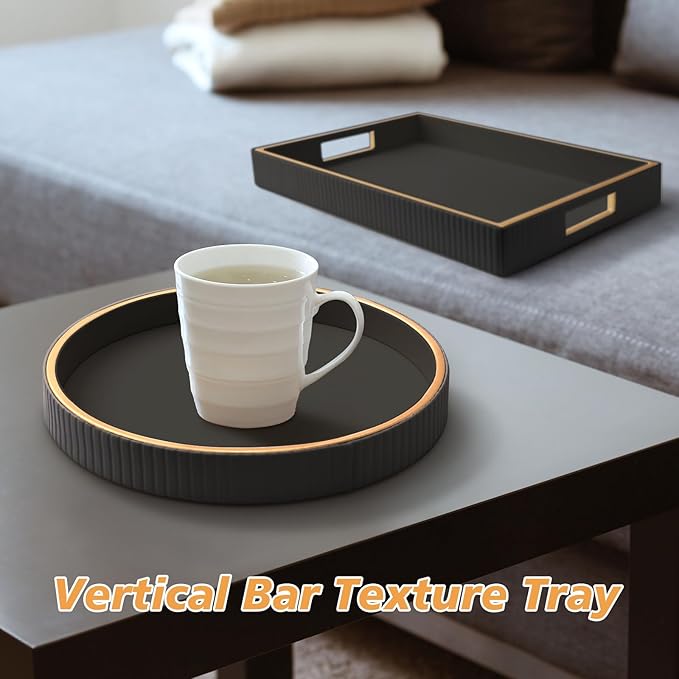 - 【Approximate Dimension】Rectangular tray, 15.3*11.2*2 inches. Round tray, diameter 10 inches, high 1.2 inches, making it a perfect size for storing small items.
