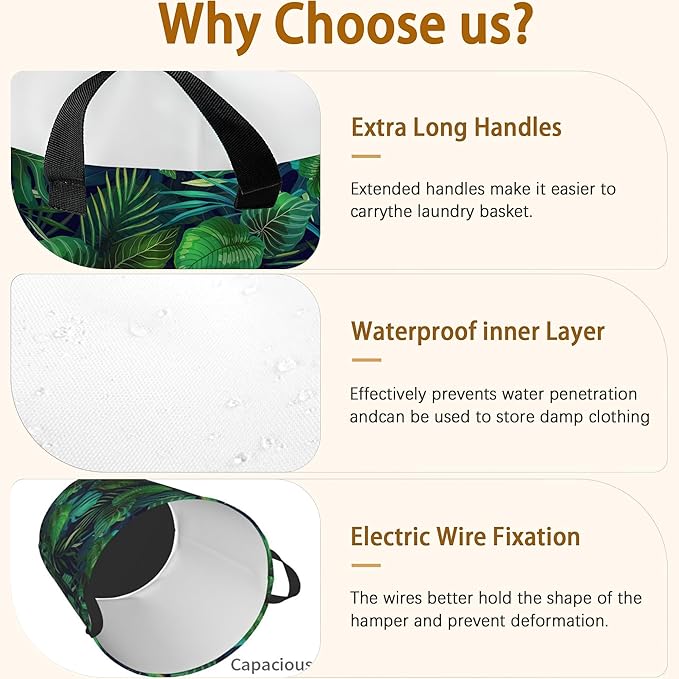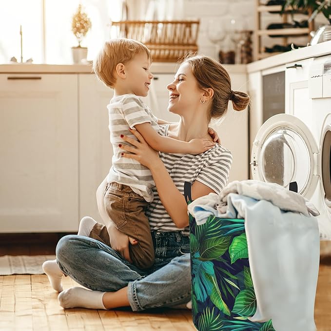 Exotic Tropical Leaves Plants Laundry Basket,Waterproof Foldable Laundry Hamper,Dirty Clothes Laundry Basket, Linen Bin Storage Organizer for Toy Collection 16" x 20"