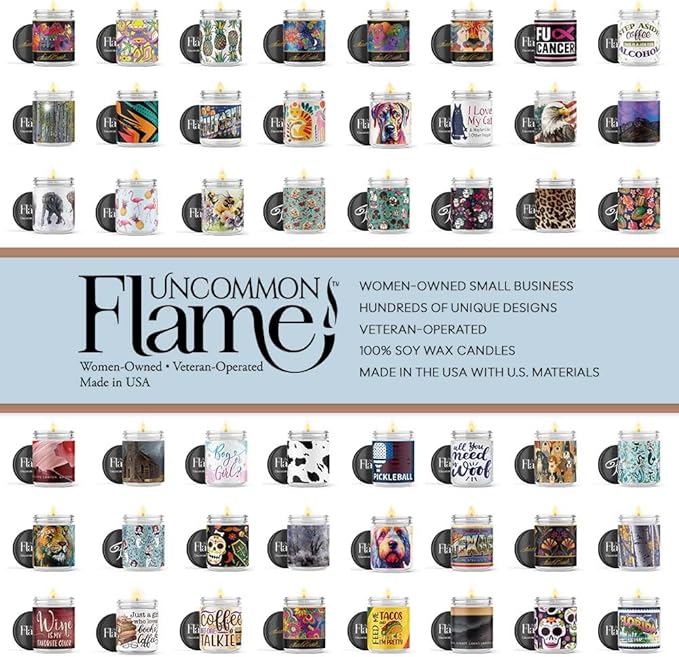 - WOMEN-OWNED, VETERAN-OPERATED, & HANDMADE IN THE USA: As a women-owned and veteran-operated business, our Uncommon Flame team takes immense pride in what we do. Each glass jar candle is hand poured in the United States, reflecting our commitment to quality, sustainably sourced materials, American-made goods, and our passion for clean candles.
