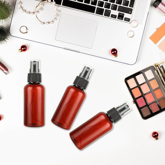 - SUITABLE SIZE - Plastic Amber Spray Bottle 2 oz measures 1.26x1.26x4.44 inches/3.2x3.2x11.3 cm. The black cap and fine atomizer are made of high quality plastic for an excellent, leak-proof seal