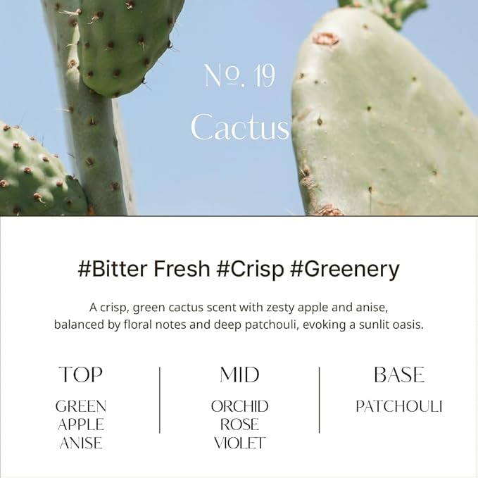 - CACTUS SCENT: Feel the energy of the Mediterranean with our Cactus diffuser. This vibrant scent captures the essence of cacti thriving under the hot sun, blending fresh, pungent notes with the unique greenery of the cactus.