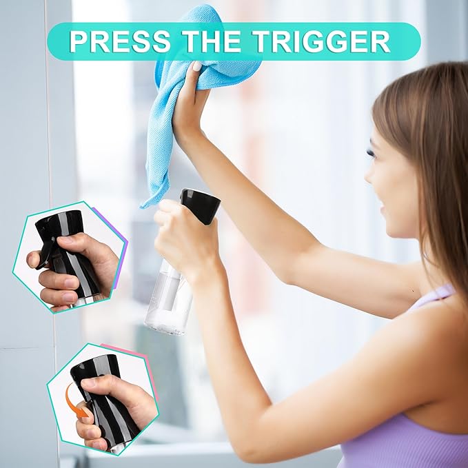 - Stable and continuous spray: spray bottle adopts new and powerful pre compression technology to effectively improve the spray time, and the spray time can reach 2-3 seconds after pressing the trigger quickly and continuously. The spray has a constant and stable output and is evenly distributed from the first drop to the last drop.