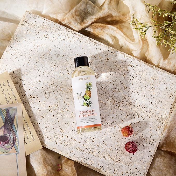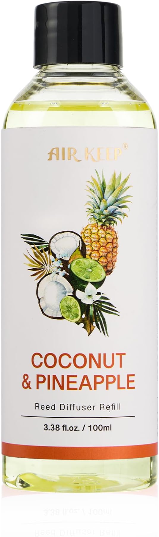 Airkeep Reed Diffuser Oil Refill/Coconut&Pineapple/3.38oz(100ml/1 Pack/Scented Oil Refill for Diffuser Home Fragrance for Bedroom, Bathroom Office Home Decor