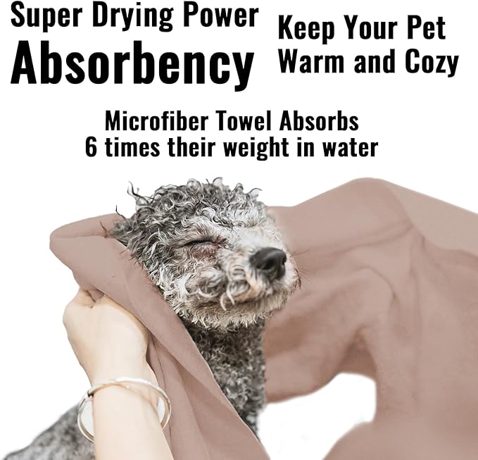 - ABSORBENT & FAST DRYING - Microfiber material provides super absorbent water ability of the towels which could absorb 6 times their weight in water makes quick drying. This pet grooming towels are perfect shower & bath supplies.