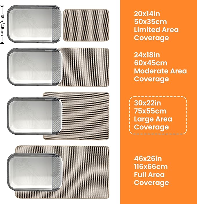 - Excellent Cat Mat for Litter Box: Measuring 30x22 inches, this beige cat litter pad is designed to catch every stray piece of litter from your cat's paws and the floor. Place it in front of or under the litter box — it's up to you. Keep your home clean and tidy with less daily sweeping and no lingering odors. Enjoy a fresher space and more free time for yourself!