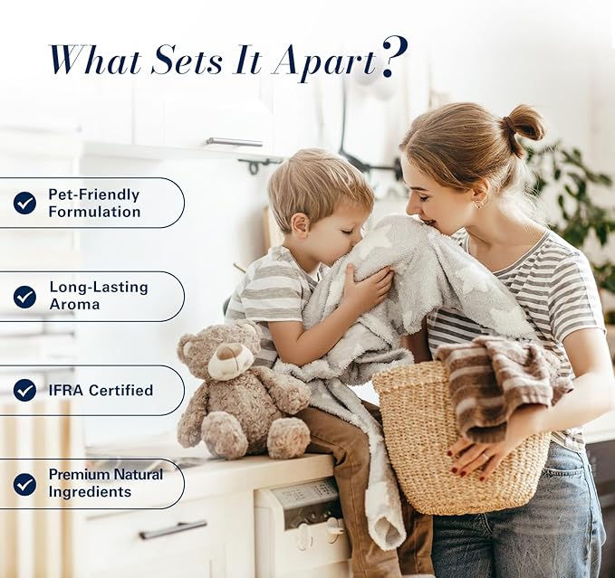 - Family and Pet Safe: Our dryer balls essential oil is free from harmful chemicals and crafted with IFRA-approved ingredients, making it safe for all family members, including your furry friends. Enjoy a clean, long-lasting scent without worry.