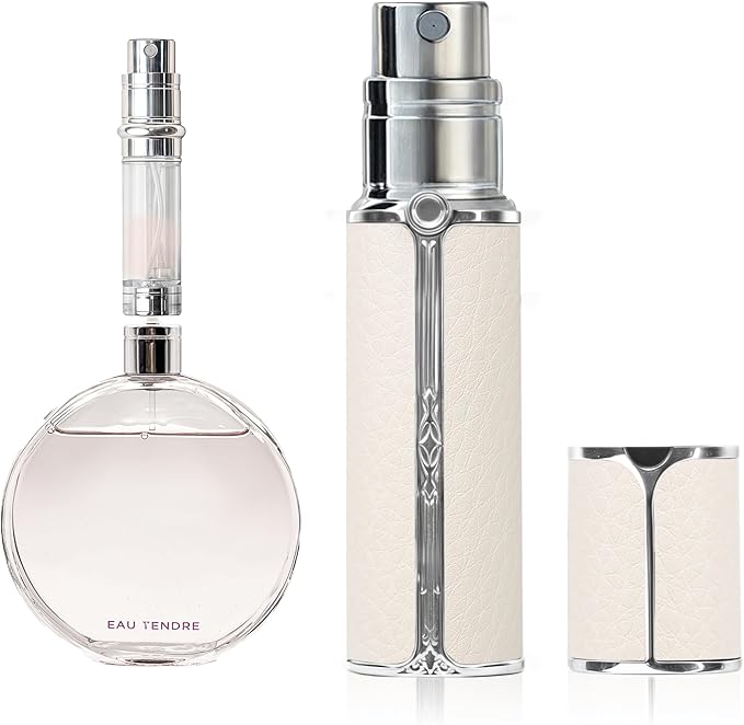 AF01WH Leather Perfume atomiser, 5ml Bottom Fill Travel Perfume Bottle, Refillable Perfume Dispenser for Women & Men (White 5ml)