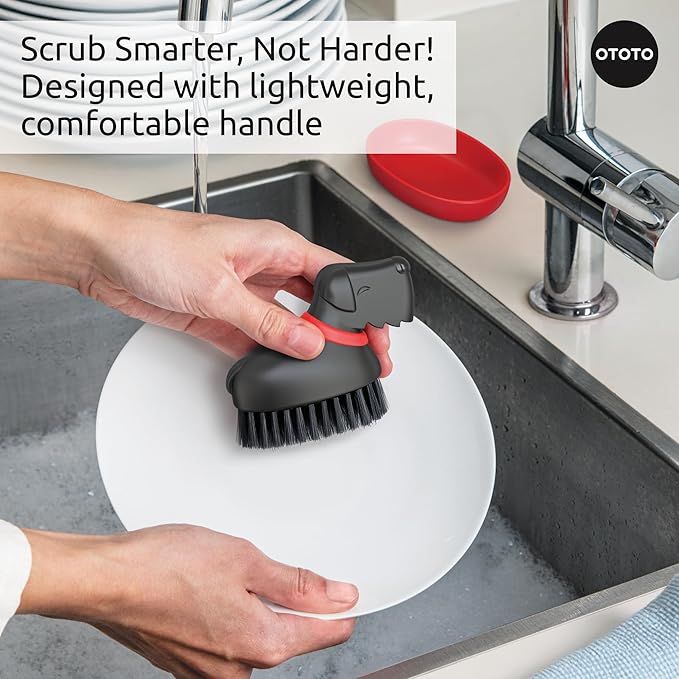 - Your Dishwashing Buddy - Meet Oscar, the dish scrub brush that wags his way into your heart! With sturdy bristles and an easy-grip handle, this dish brush makes cleanup time something to look forward to. Add a dose of puppy love to your sink side routine!