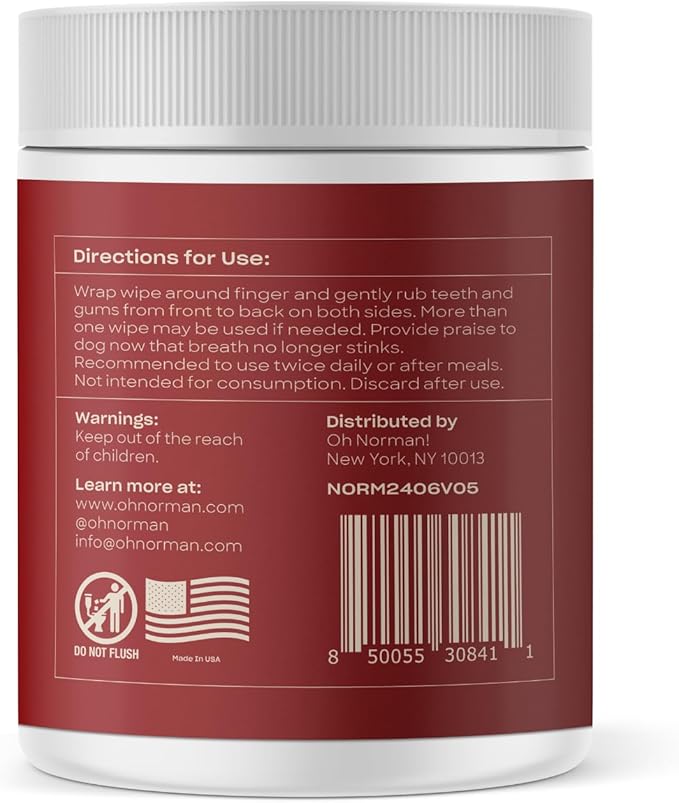 OH NORMAN! Dog Dental Wipes - Vet-Approved Pet Dental Finger Wipes for Oral Hygiene & Fresh Breath - Alternative to Finger Toothbrush for Dogs - No Fuss Dog Cleaning Supplies for Daily Use - 50 pcs