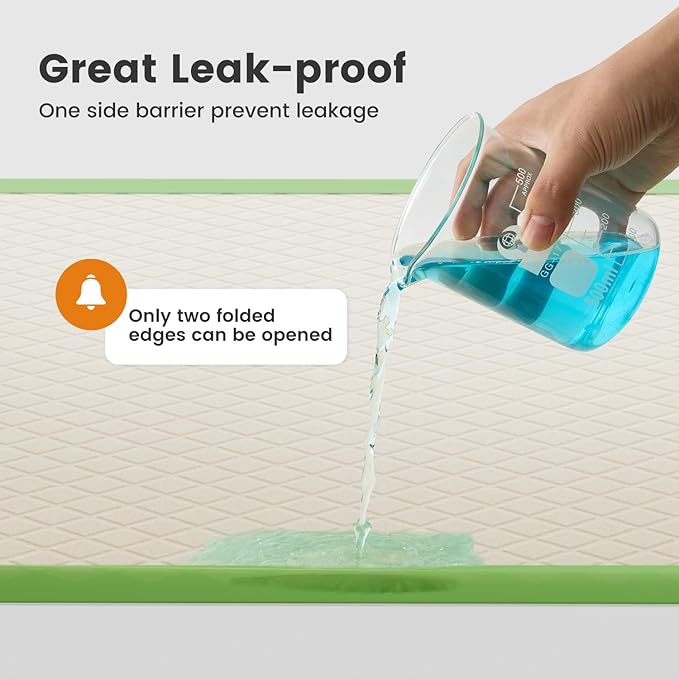 - 【Double Leak-proof】These pads are designed with extra four-sided barriers on the edge and an extended border, containing liquid and reducing side leakage, to provide double protection.