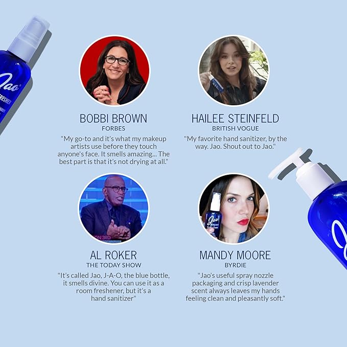 - Refresh Hands, Not Strip - This Refresher targets impurities and freshens hands without drying them. It's a moisturizing hand sanitizer with a potent 65% plant-based Ethyl Alcohol combined and balanced with a blend of essential oils, keeping your skin clean, cool, and oh-so-soft and toned. Besides being a skincare must-have, it's also an aromatherapy booster, so you stay clean and reinvigorated with each spritz (even the Elle Green Star Awards gave Jao Refresher the recognition it deserves!).