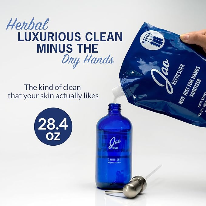 Jao Brand Refresher Refill | Multipurpose Travel Hand Sanitizer, Face Moisturizer, Toner For Face, & Aftershave | Skin Care Travel Essentials | Plant-based | No Parabens, No Sulphates | 28.4 oz