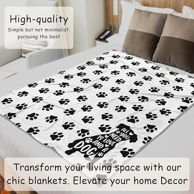 HIWX Paw Print Dog Blanket – Soft Throw for Dog Moms, Gift Idea for Pet Owners, Cozy Blanket for Couch or Bed, 50x60 Inches