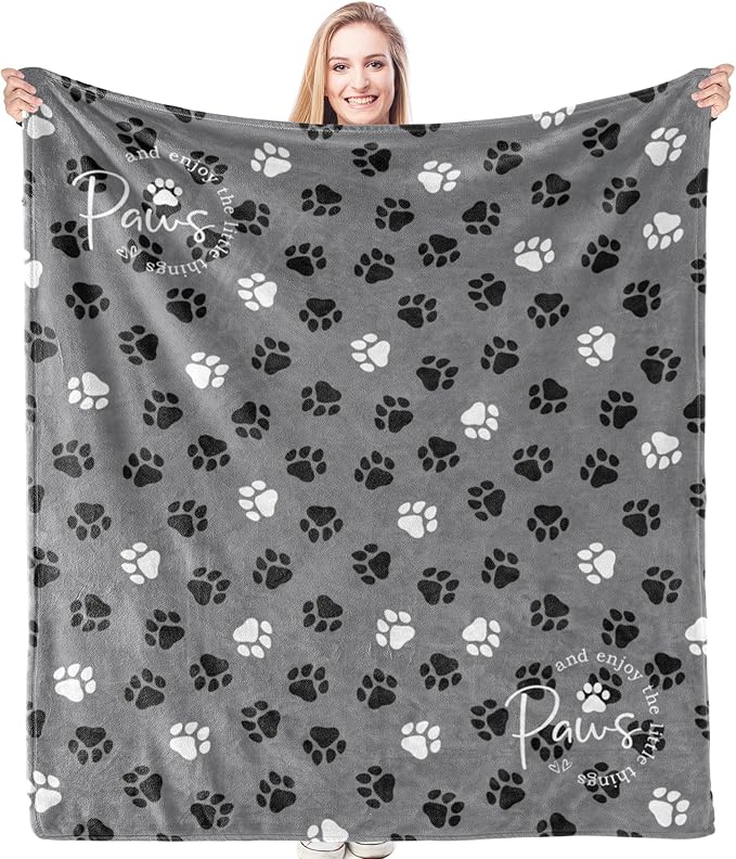 HIWX Dog Blanket, Dog Mom Lovers Owners Gifts for Women, Pet Lovers Gifts, Puppy Paws Print Throw Blanket for Couch Bed Sofa Living Room Bedroom Decor, 50x60 Inches