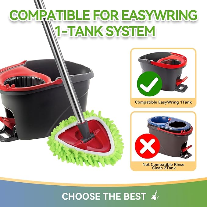 - Specific Compatibility: These Mop Replacement Head Refills are exclusively compatible with Ocedar EasyWring 1-Tank Spin Mop System. They are not designed for the RinseClean 2-Tank system.
