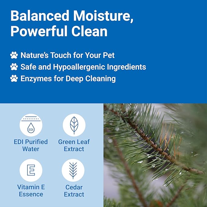 - Natural Rainforest Scent: Infused with the essence of a freshly rained forest, these wipes capture the pure, natural scent of nature. This refreshing aroma keeps your pet smelling clean and pleasant after every use, offering the soothing experience of a natural environment.