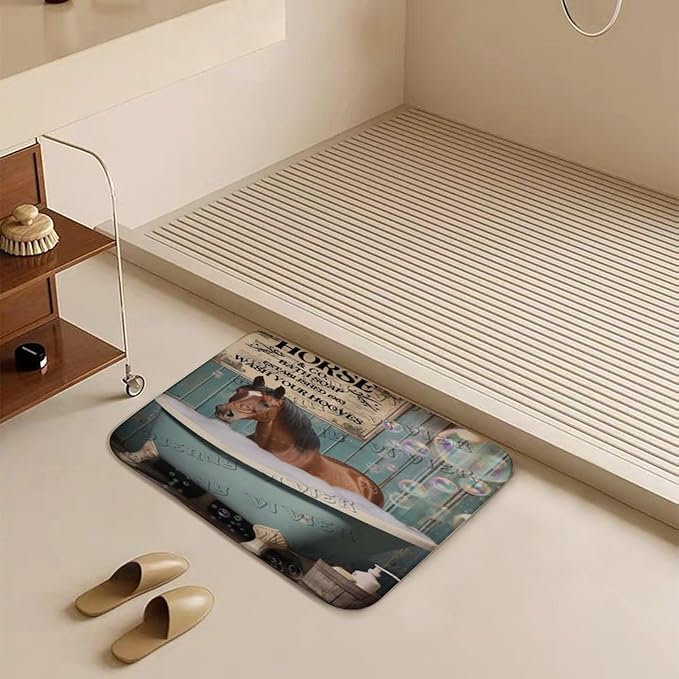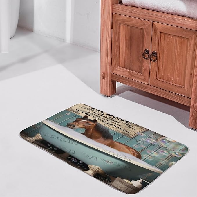 Horse Wash Your Paws Bath Mat,Cute Cartoon Horse Bathroom Rugs with Non Slip Backing,Washable Cover Floor Rug Carpets Floor Mat 16"x24"