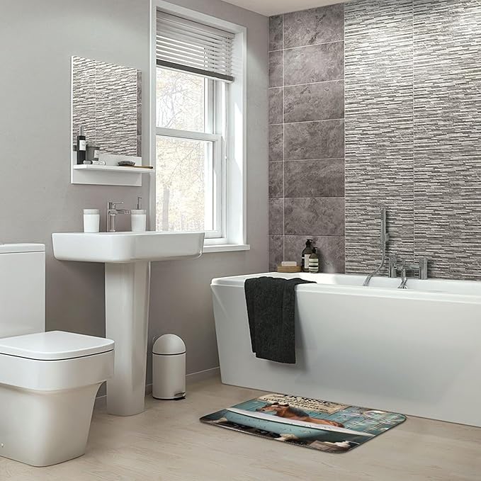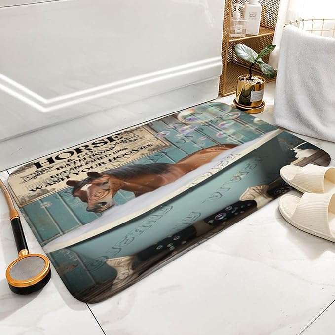 Horse Wash Your Paws Bath Mat,Cute Cartoon Horse Bathroom Rugs with Non Slip Backing,Washable Cover Floor Rug Carpets Floor Mat 20"x32"