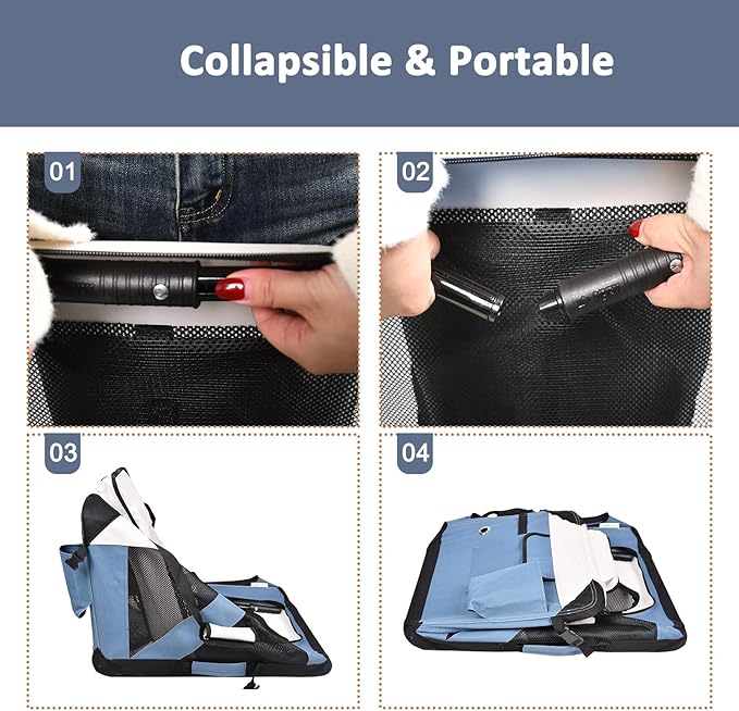 - Collapsible Dog Kennel: Three mesh entrances door (Top, front and side) for convenience sunlight and breathability; Ample Ventilation for Use in All Season. Easy carry with handle or strap. Adjustable strap included.