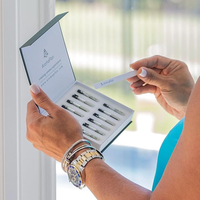 - LUXURY AND FRESHNESS IN A BOTTLE: Elevate your space with the Aromaplan bundle, featuring a 5 fl oz Bamboo Air fragrance, designed for use in scent machines, along with a sample set of 12 exclusive fragrances for smelling only. This sample set allows you to explore a variety of scents and discover your perfect match for your next fragrance.