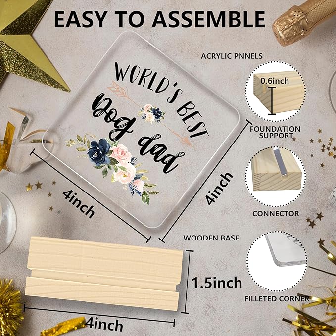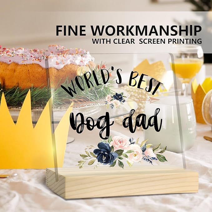 Dog Dad Gifts, Dog Dad Gifts for Men, World's Best Dog Dad Acrylic Plaque, Best Dog Dad Gifts, Dog Owner Lover Gifts for Men, Gifts for Dog Dad Acrylic Sign Desk Table Shelf Decor