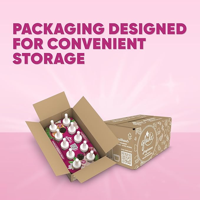 Glade PlugIns Refills Air Freshener, Vanilla Passion Fruit, Scented and Essential Oils for Home and Bathroom, 0.67 Fl Oz, 10 Count