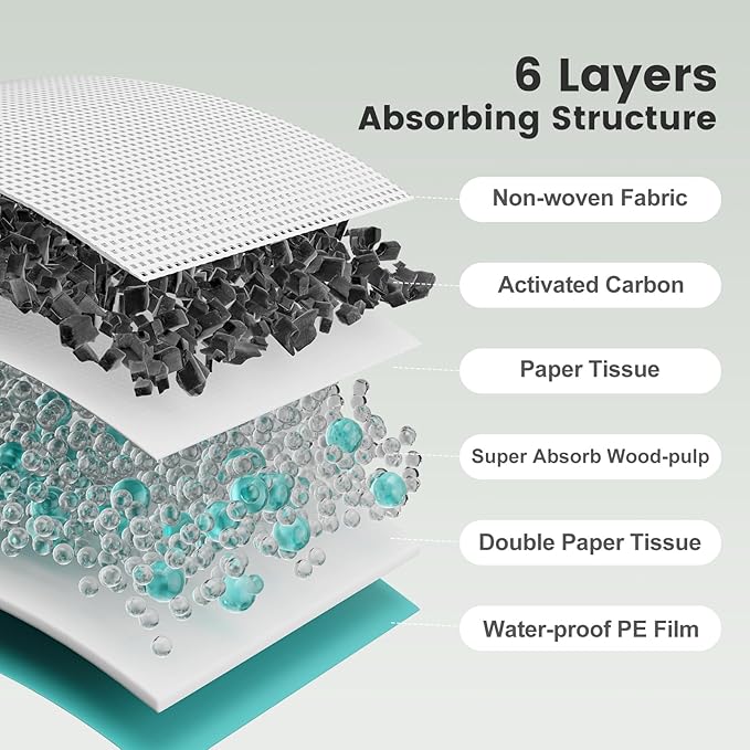 - 【Super Absorbent】High-absorbency SAP core, which instantly turn urine into gel, locking in moisture and keeping the surface dry. These 6-layer thickened cat pee pads can hold up to 850ml liquid—enough for 2-3 days of use per cat.