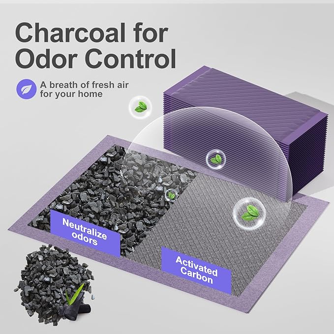 - 【Odor-Control】Crafted froml activated carbon, our cat pee pads boast an adsorption ability. This feature not only purifies the air but also eliminates unpleasant odors of urine, which ensuring a fresh and healthy environment for your cat!