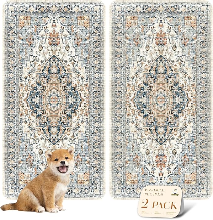 nunubaby Washable Pee Pads for Dogs, Stylish, Non-Slip and Leak-Proof Pee Pads. Reusable Potty Pads for Dogs for Crates and Floors.(Beige/Multi, 24" x48" )