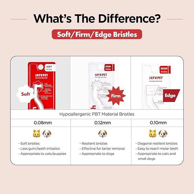- Extra Soft Bristles (0.08mm microfiber) - The soft PBT material bristles are suitable for cat, kitten and puppy who are new to brushing their teeth or are afraid to brush their teeth.
