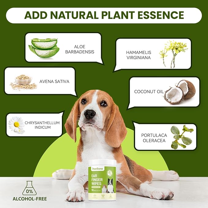 - 【All Natural Ingredients】The key natural ingredients of our ear cleaning for dogs wipes include:Hamamelis Virginana Water, Cocos Nucifera Oil, Charysanthellum Indicum Extract, Portulaca Oleracea Extract, Avena Sattva Extract, Aloe Barbadesis Extract. Gentle on your pets' ears, our pet ear wipes are alcohol-free and free of parabens and fragrances, ensuring a soothing and non-irritating experience. Safe if licked or ingested.