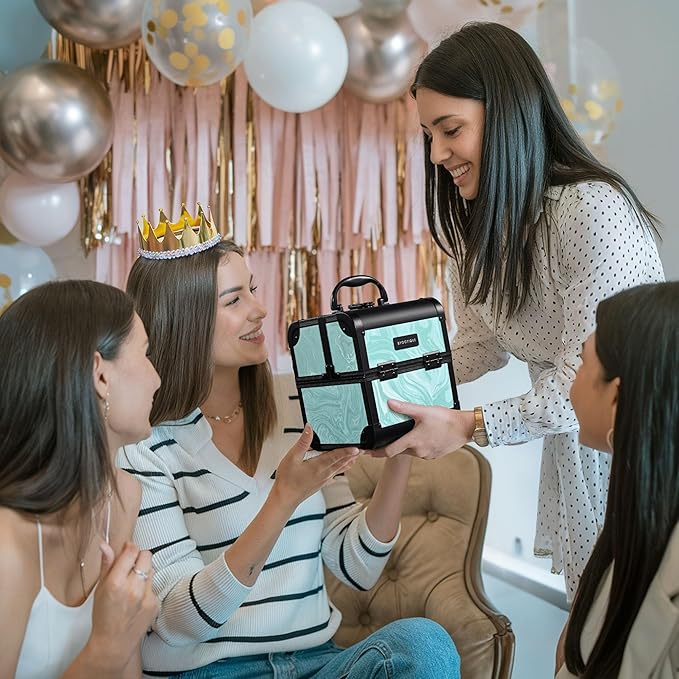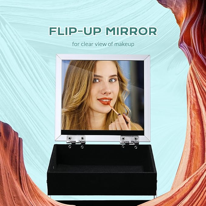 - Built-in Mirror & Extendable Trays - Open the cosmetic storage cases to reveal a flip-up mirror and 2 extendable trays inside, ideal for storing your makeup essentials such as lipsticks, compressed powders, nail polishes, and small jewelry, along with a bottom space for holding liquid foundation and small bottles