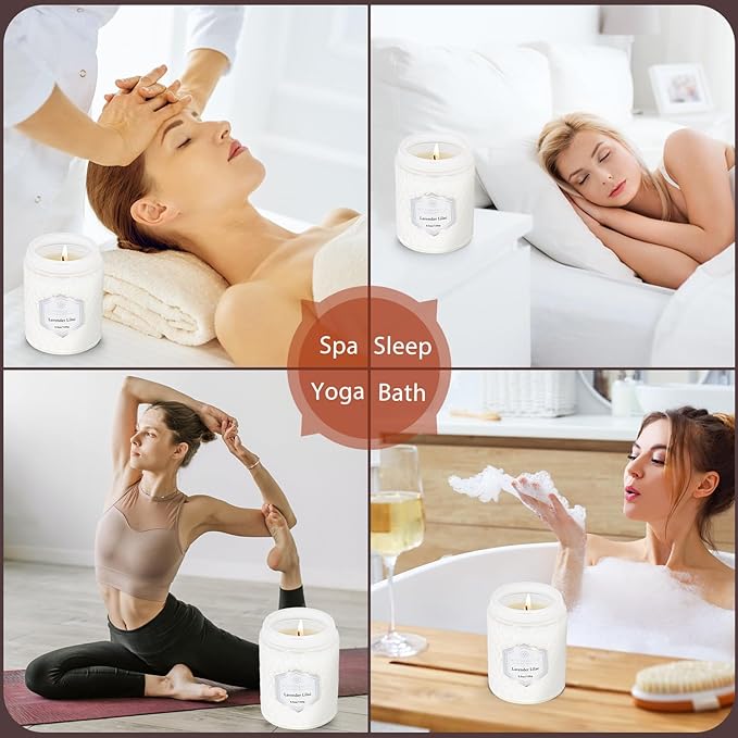 - 【Create Comfortable Atmosphere】Aromatherapy candle emits a pleasant aroma when burning, effectively relieves stress and relaxes the body and mind, while also purifying the surrounding air, and is very suitable for home or office use, aromatherapy, yoga, bathing, weddings, family reunion, insomnia, meditation, etc., and is a perfect addition to the bathroom, bedroom, kitchen, living room, office, etc.
