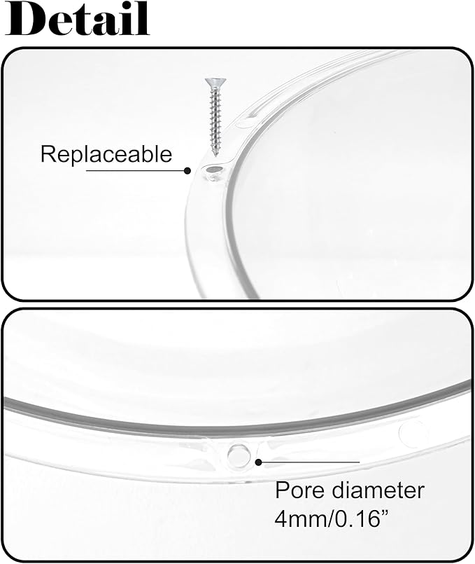 - Easy to Install: Four pre-drilled holes in the dome make it easy to attach securely to shelves. Note: Screws not included. Please check the size before buying. Outer Dia: 12.6". Inner Dia: 11.8".