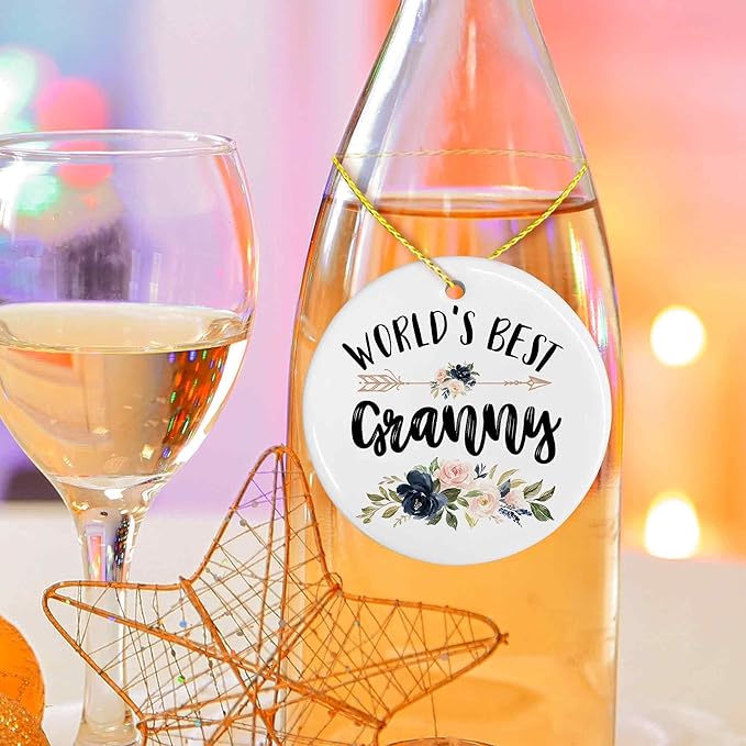 World's Best Granny Ceramic Ornaments Gifts, Grandma Grandmother Round Hanging Ornament Decor Decorations for Christmas Tree Car, Thank You Appreciation Gifts for Granny Birthday Holiday