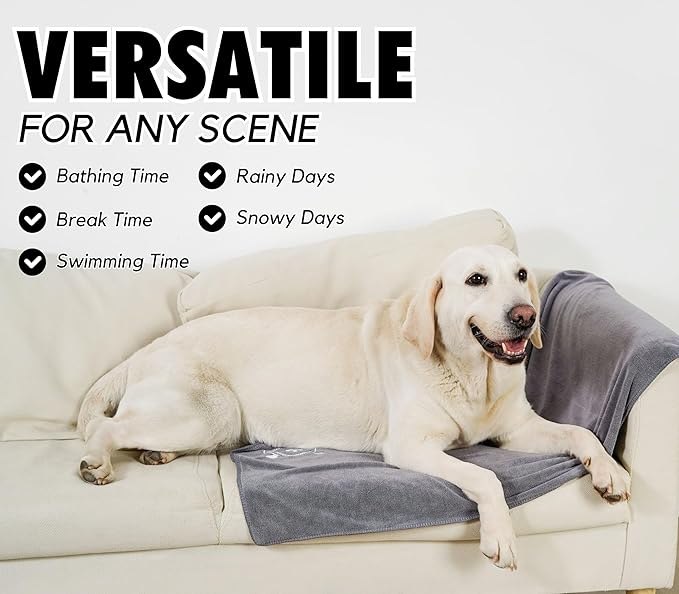 - ABSORBENT & FAST DRYING - Made with premium microfiber, this dog towel provides excellent water absorption. It dries quickly, making it the perfect companion for baths, beach days, or rainy walks.