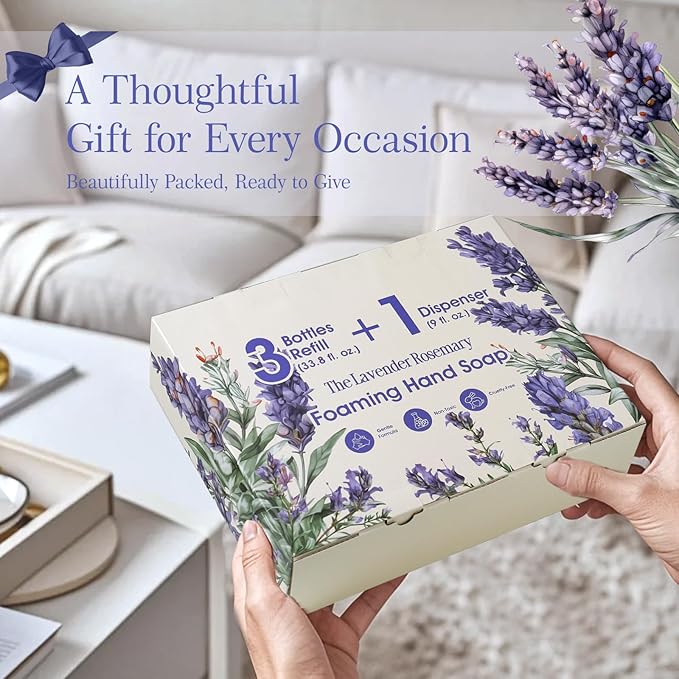 ROMIIE ZOI Foaming Hand Soap Refill Gift Set-3 Pack with Dispenser, Cruelty-Free and Biodegradable Formula, Moisturizing with Essential Oil for Sensitive Skin,Lavender Rosemary Scent,(33.8 Fl Oz x 3)