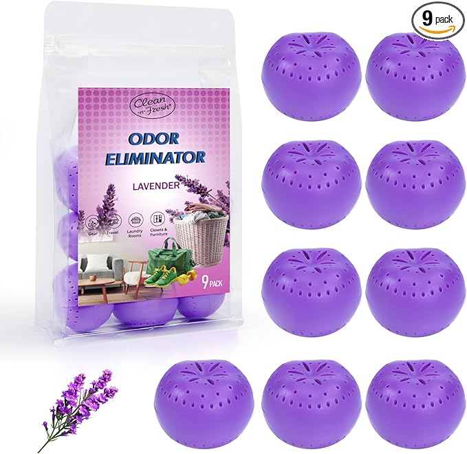 9 Pack Baking Soda Deodorizers, Lavender Scent Shoe Deodorizer Balls, Air Freshener for Home, Odor Eliminator for Closets Bathroom Pets, Up to 80 Days