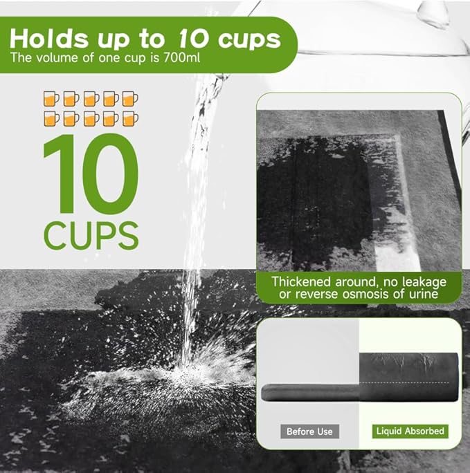 - 【SUPER ABSORBENT】The oversized pee pad offers superior absorbency, effortlessly accommodating up to 10 cups of liquid without overflow. Its diamond quilted surface prevents urine pooling, while the waterproof plastic bottom prevents leakage.