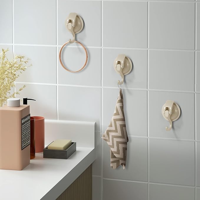 Heavy Duty Vacuum Suction Cup Hooks, Oyster White Plated Polished Super Suction for Kitchen Bathroom, 2 Pack