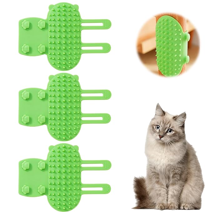 - Complete Grooming Kit: Includes 3 silicone brushes designed as a cat self groomer for indoor cats. These silicone cat self groomer massage brushes gently remove loose hair, promoting relaxation and reducing shedding