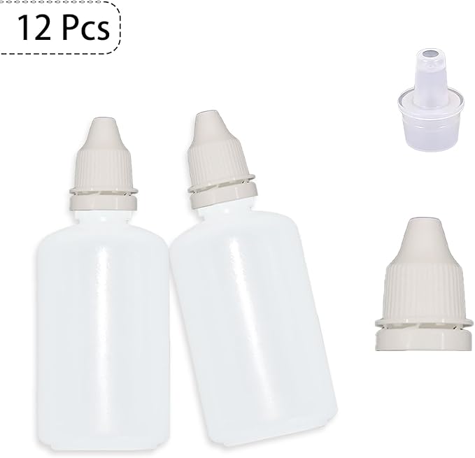 - Quantity & Dimensions: Includes 12 dropper bottles, each 50ml/1.7oz, with a 38mm diameter and 92mm height including the white lid.